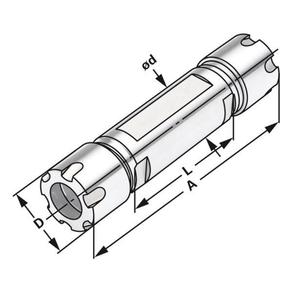 Диаметр = 1 - 10 (ER 16)dh6 = 20D = 22L = 70A = 123