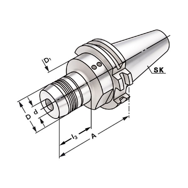 Для закрепления осевого инструмента по DIN 1835 типа A+B+E и DIN 6535 типа HA+HB+HE (при диаметре более 20 мм закрепляются при помощи хвостовика с переходными втулками)