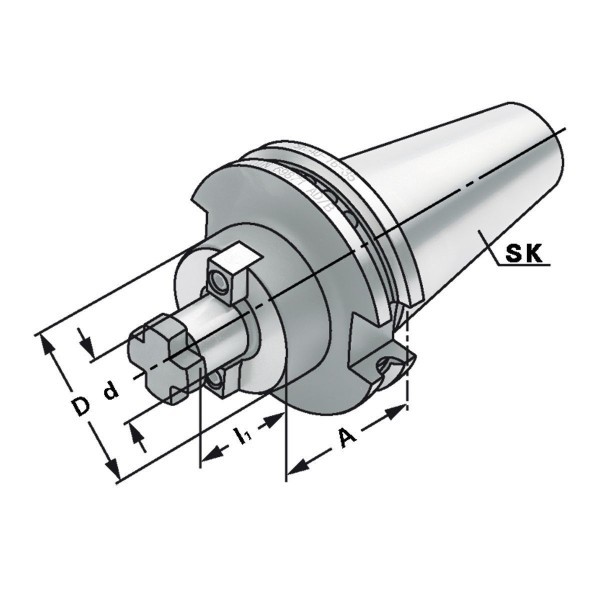 Для фрез большого диаметра исполнение оправки предусматривает четыре дополнительных резьбовых отверстий по DIN 2079