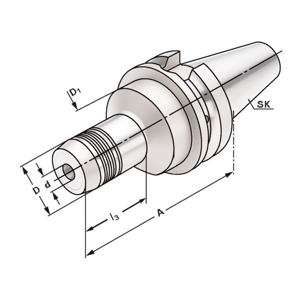 Для закрепления осевого инструмента по DIN 1835 типа A+B+E и DIN 6535 типа HA+HB+HE (при диаметре более 20 мм закрепляются при помощи хвостовика с переходными втулками)