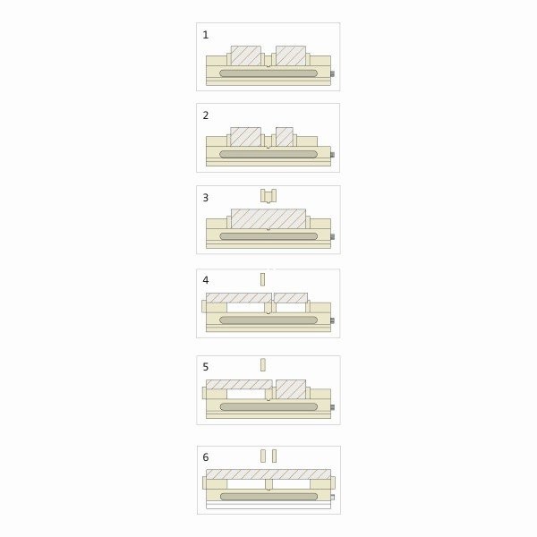 - Механизм двойного зажима с помощью одной неподвижной и двух подвижных губок
